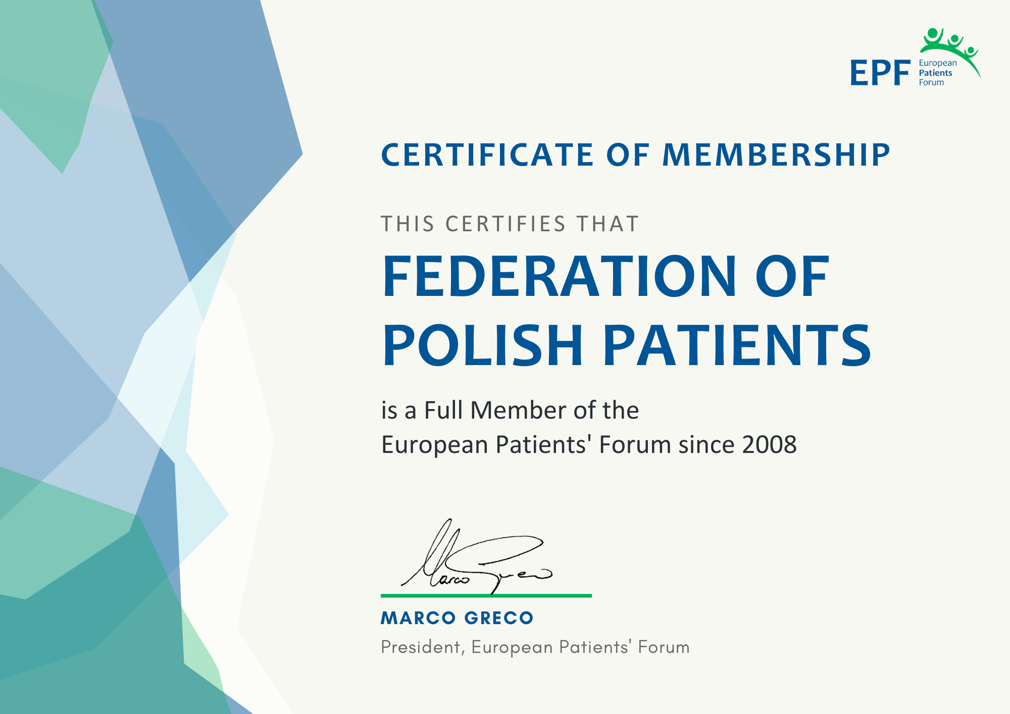 The Federation of Polish Patients (FPP) brings together representatives of patient organisations in order to effectively influence the decisions regarding the direction of reforms and to ensure and safeguard the interests of all patients.